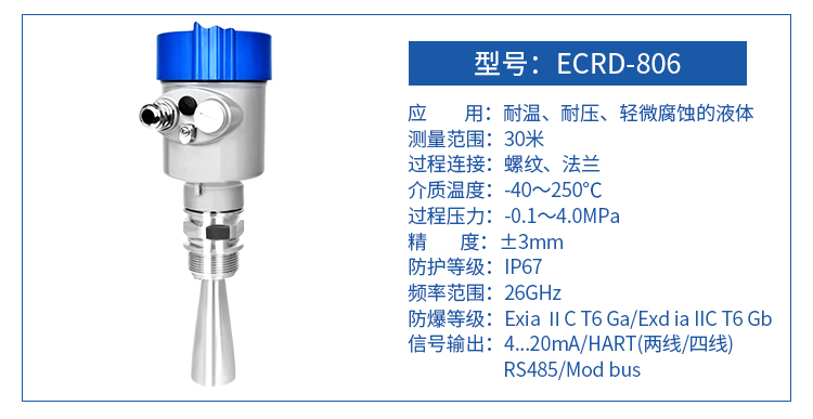 高頻26G雷達式物位測量儀表,測量距離可達到80米,天線被進一步優(yōu)化處理,新型快速的微處理器可以進行更高速率的信號分析處理,使得儀表可以用于反應釜、固體料倉等一些復雜的測量條件。